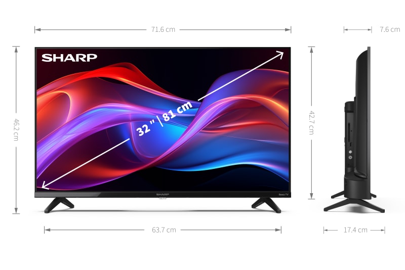 The 32GD2625K is a HD Ready Frameless LED Sharp Roku TV with exceptional multimedia functionality.